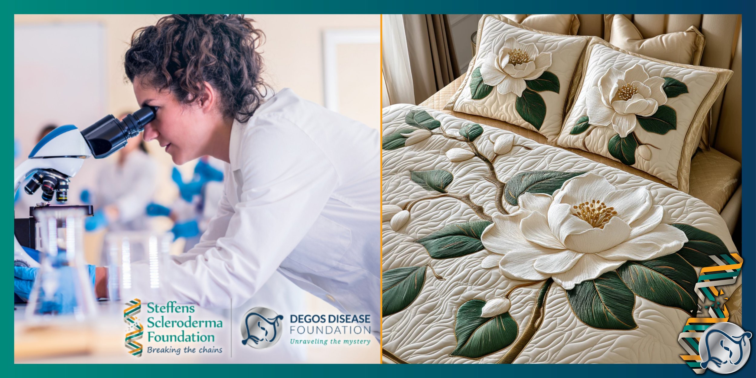 The Steffens Scleroderma and Degos Disease Foundations are excited to present our Holiday Quilt Raffle! The prize is the stunning “Magnolia Harmony” 3-Piece Quilted Bedding Set—a queen-size blend of comfort, beauty, and quality. But this raffle is about so much more than cozy bedding.